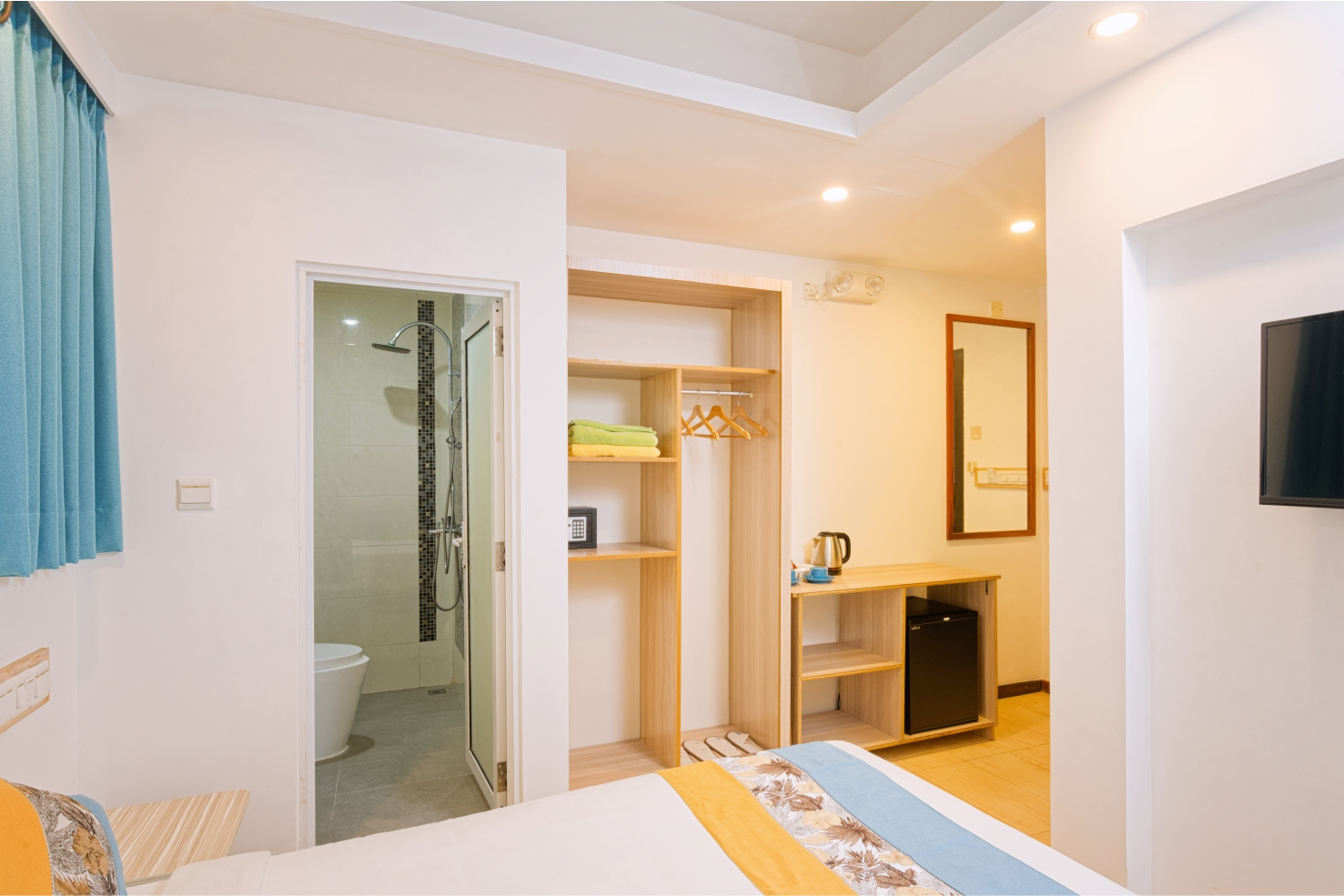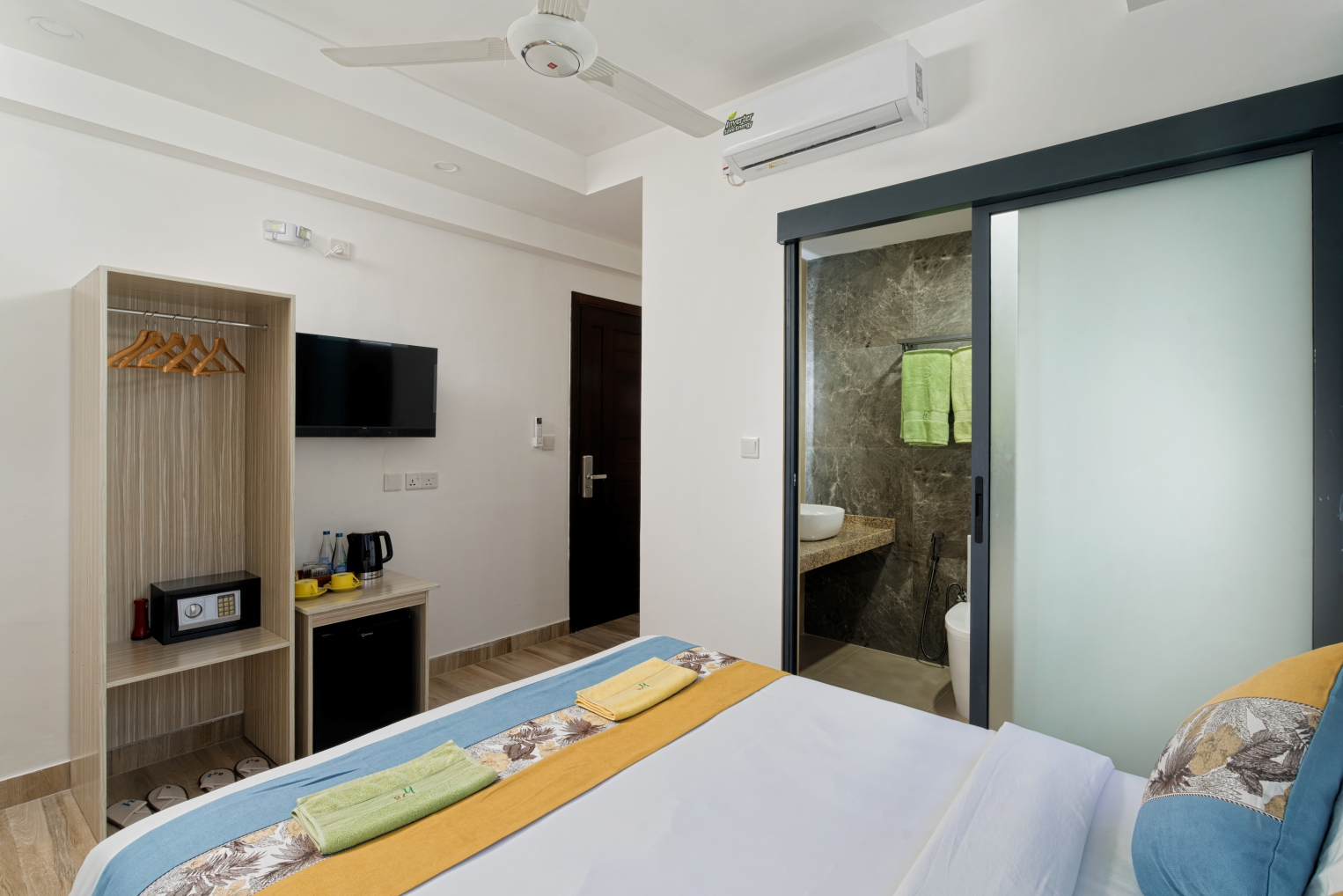 The rooms at h78 Iru are designed with both comfort and functionality in mind. Whether you're traveling solo, as a couple, or with friends, each room offers a calm and welcoming space to unwind. Featuring modern furnishings, soothing tones, and all the essential amenities — including high-speed Wi-Fi, a flat-screen TV, in-room safe, and complimentary coffee and tea — our rooms ensure a restful stay.