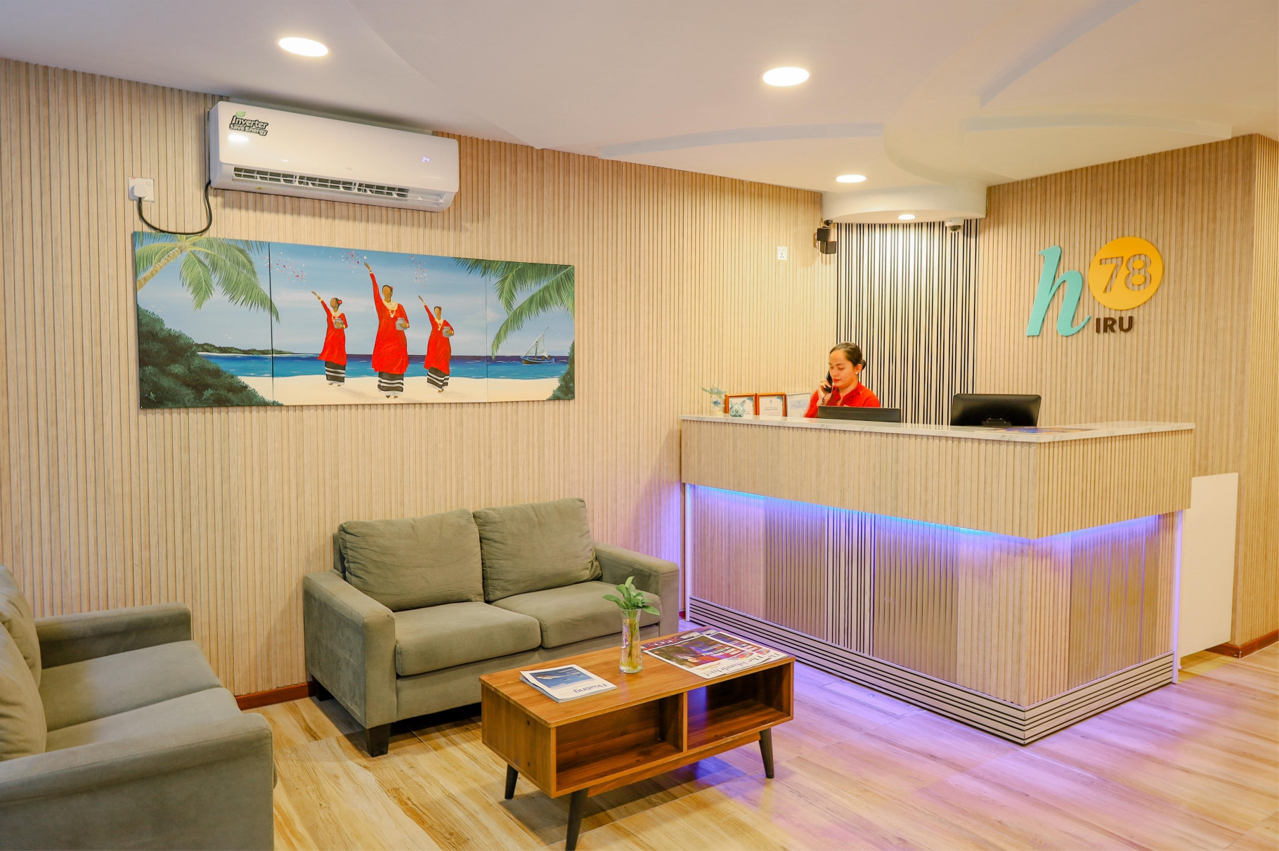 h78 Iru features a cozy café-style dining area, perfect for casual meals, light bites, or your daily coffee fix. The space is decorated with traditional Maldivian paintings and murals, adding a cultural touch to your dining experience. Whether you're starting your day with a fresh breakfast or taking a quiet break with a cup of Lavazza coffee, the relaxed indoor setting offers comfort, charm, and a taste of island life.