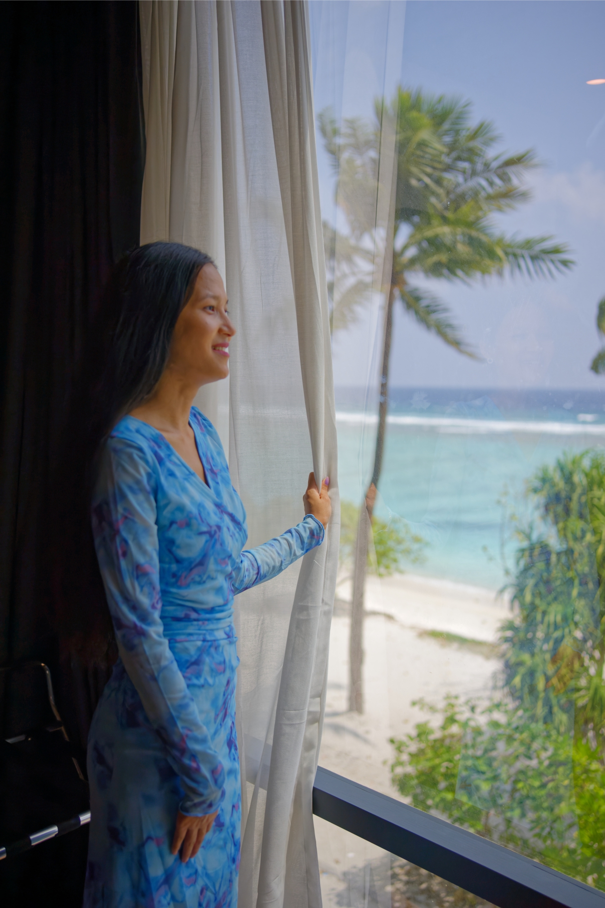 Wake up to panoramic ocean views from your private balcony and enjoy the comfort of a thoughtfully designed space that blends leisure with productivity. Whether you’re a working traveler or simply need a quiet spot to read or reflect, the dedicated desk area offers the perfect corner to focus while still being immersed in the beauty of the Maldives.